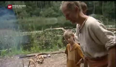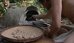 Video Blog 2007/08/07 (16 mins): Making bread (sour-doe), preparing cookies sort of, creating birchskin based tar to glue pottery and other tools - two wanderer begin their way back, passing a river and reaching a pass