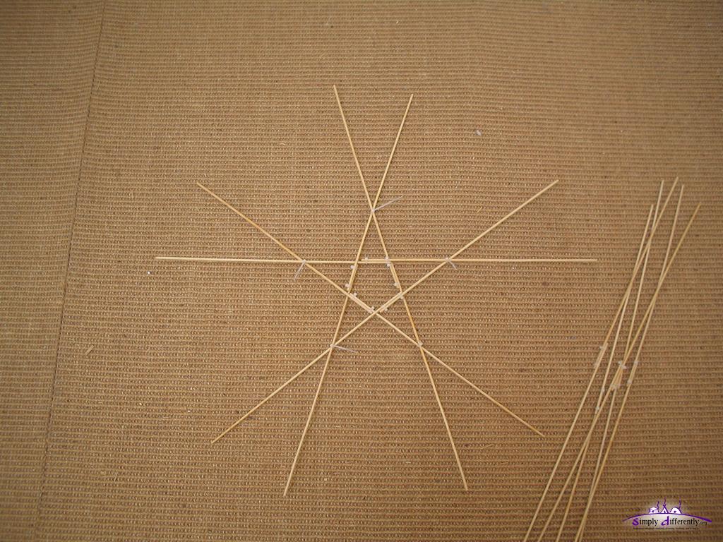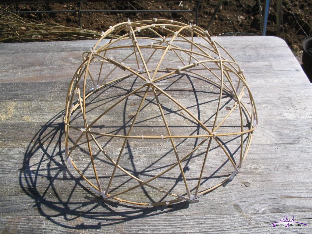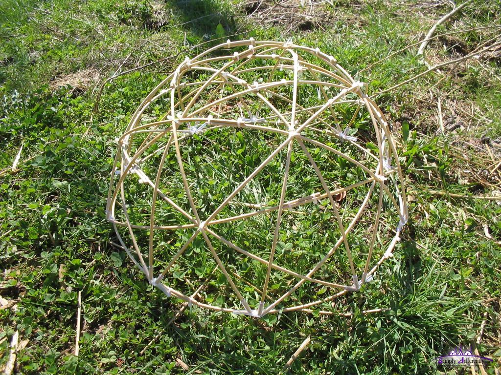 As next the 3rd bow for each base need to be attached as well, first I made it go outside of the existing dome, but it didn't fit, so I put the 3rd bow inside to form a better dome (the sticks are hard to bend and rather stiff), the result was a much better dome then.