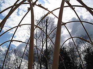 Consider to check the bow dome section as well, where a larger model of a willow bow dome with wigwam-like (interwoven sticks) finish is documented.