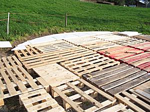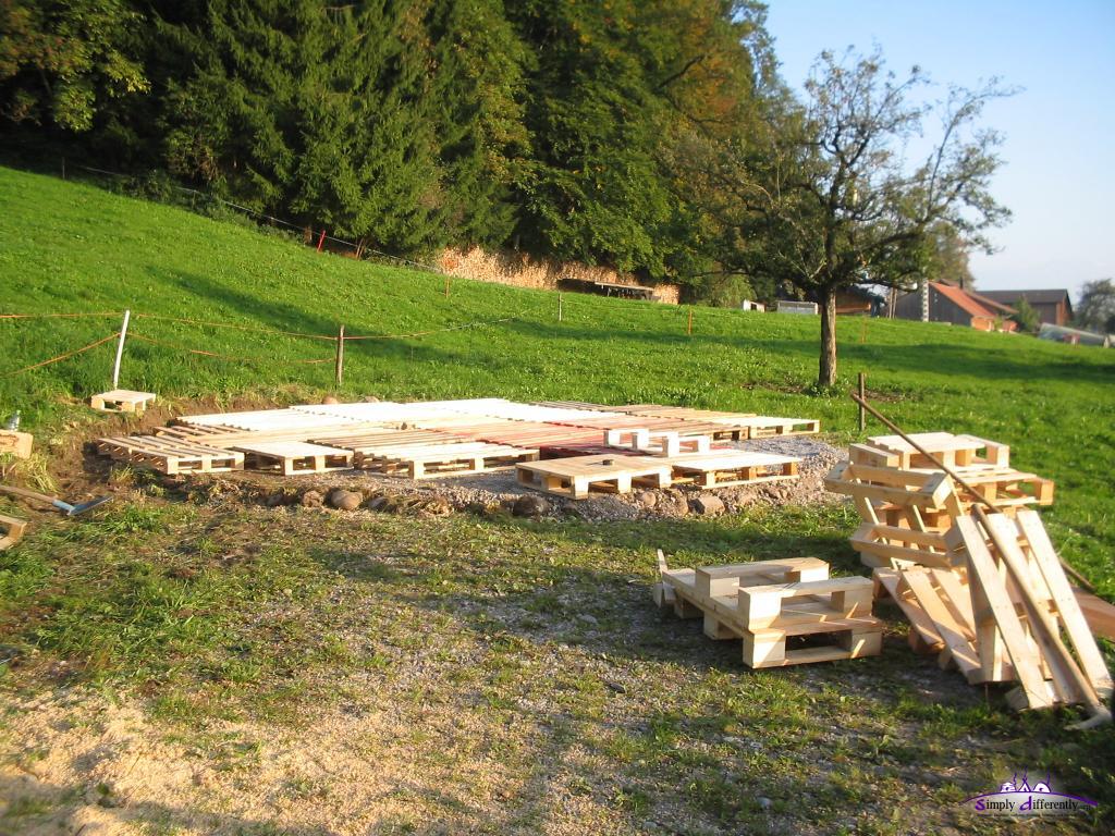 The detail or fine leveling of the palettes (+/- 1 to 2cm) I do with gravel, couple of small stones and if neccessary short wood pieces (left-overs from constructions I did before).