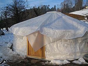 With the four layers of insulation the ice on the roof doesn't melt when I have heated the inside of the yurt, good sign.